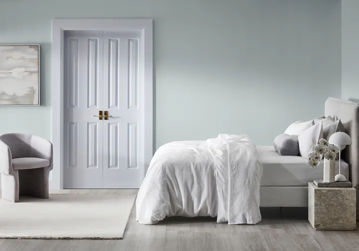 Porter's Eggshell has a natural matt finish. This gives bedroom walls a calming feel with a low reflective finish and a subtle, natural lustre.